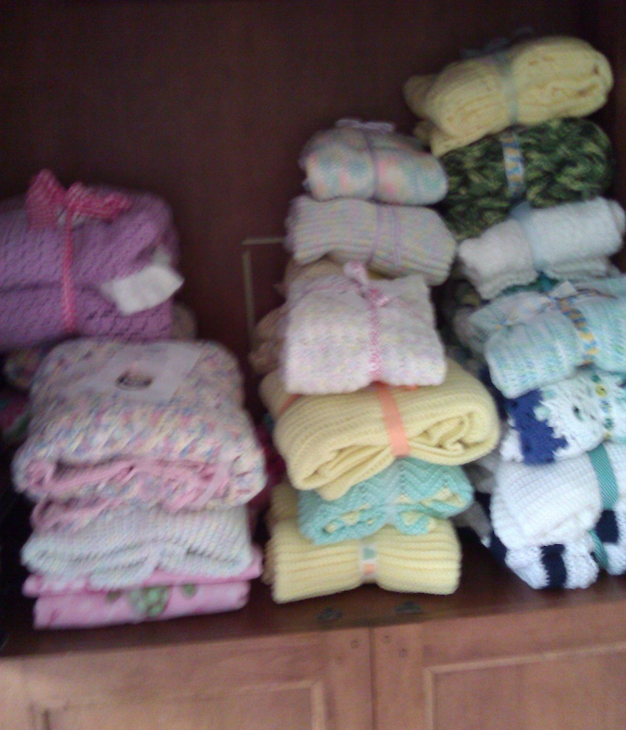 This week another box arrived from Martha in Oklahoma. The blankets, hats and booties that she made are beautiful!